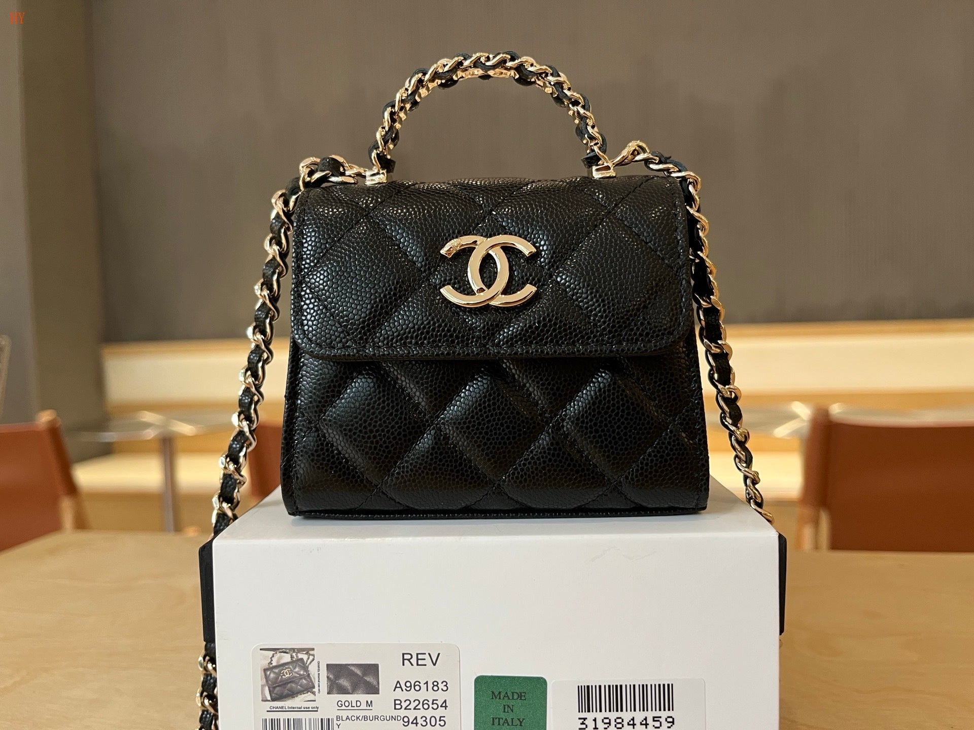 Mini sac Chanel en cuir noir matelassé, orné du célèbre logo CC métallique sur le rabat. Il dispose d’une poignée supérieure et d’une chaîne entrelacée permettant un porté main ou épaule. Élégant et iconique, ce modèle incarne le chic intemporel de la maison Chanel.