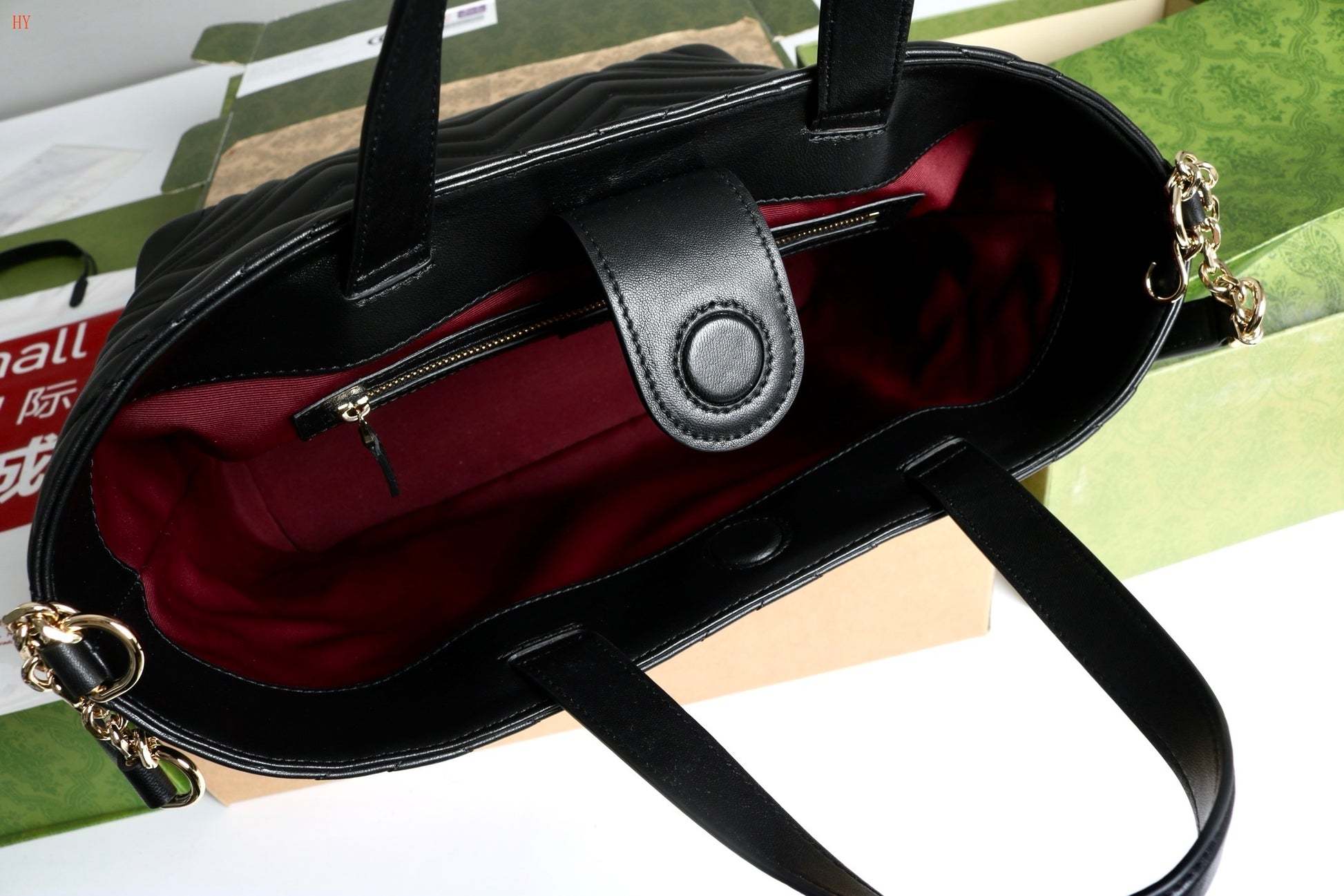 - Détails : Finitions dorées, logo double G